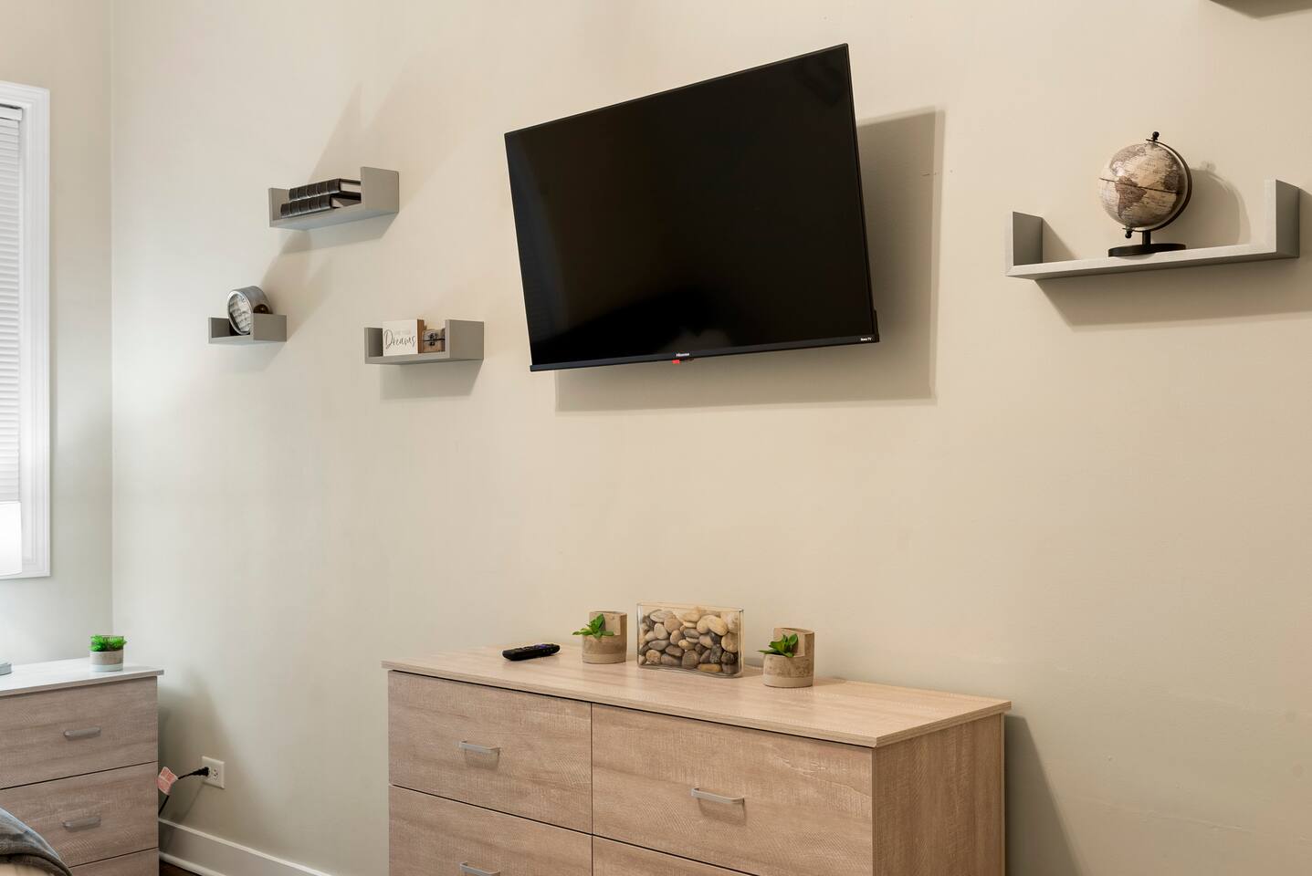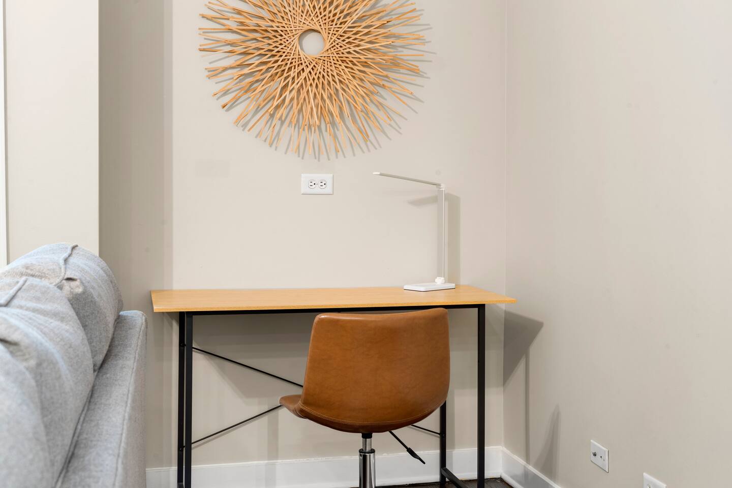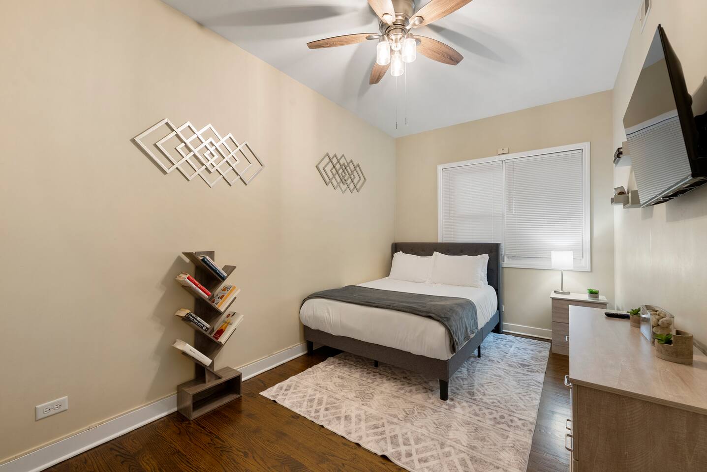🖥️ Dedicated Workspace + Fast Wi-Fi A real desk and ergonomic chair make work, studying, or charting a breeze. 🍳 Fully Equipped Kitchen for Daily Cooking Cook full meals just like home—pots, pans, utensils, plates, microwave, stove, and fridge included. 🚗 Free Street Parking Ideal for commuters, students, and medical professionals. 📺 Smart TVs in Every Room Wind down with Netflix, Hulu, or your favorite streaming apps in the living room and bedroom. 🛏 Queen Air Mattress (By Request) Accommodate visiting friends, partners, or family without needing a larger space. ❄️ Heating & AC for All Seasons Chicago winters get cold and summers get hot—enjoy comfortable climate control year-round. 🧼 Starter Toiletries + Cleaning Supplies Perfect for multi-week stays—cleaning supplies provided so you can refresh between visits from the cleaners. 🔒 Safe, Secure Building Access Enjoy a quiet, secure building environment ideal for long-term stays and late-night shifts.